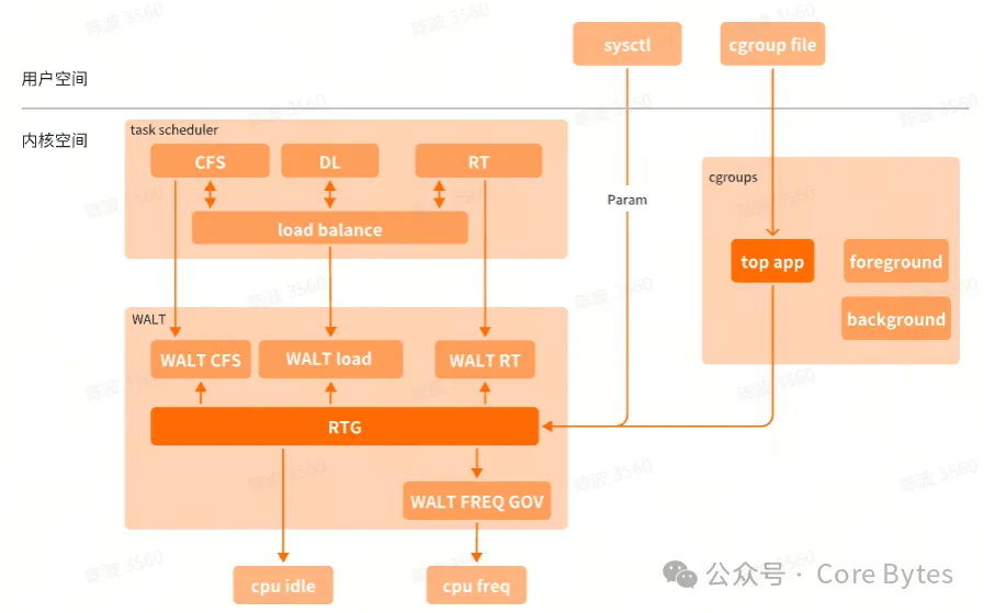 用于管理CPU的WALT调频,它的walt_load中的rtgb_active会影响CPU的调频和CPU状态延迟时间; - waltgov_tunables